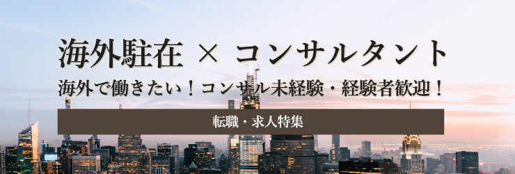 今回は「海外駐在で働く」というところにフォーカスして、コンサルティングファームの求人をご紹介していきます。